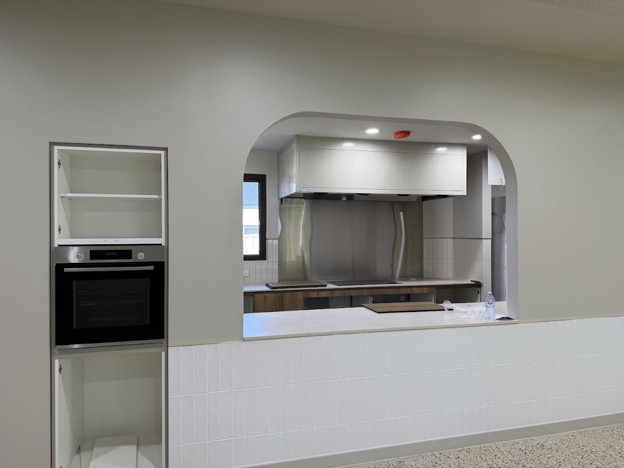 The installation included outside air integration and multiple exhaust air systems. This included commercial rangehood extraction with evaporative makeup air to support the site’s ventilation and operational requirements. Ventilation and Compliance